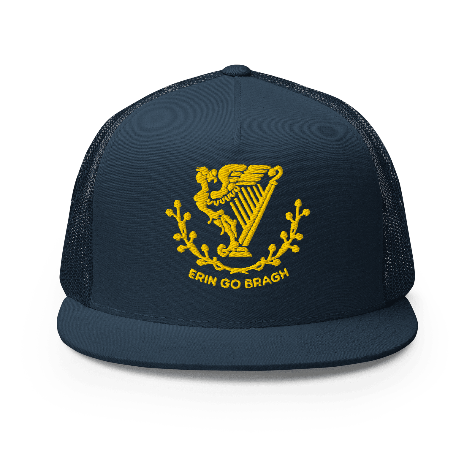 “Erin Go Bragh” Golden Harp Embroidered Trucker Cap – Navy