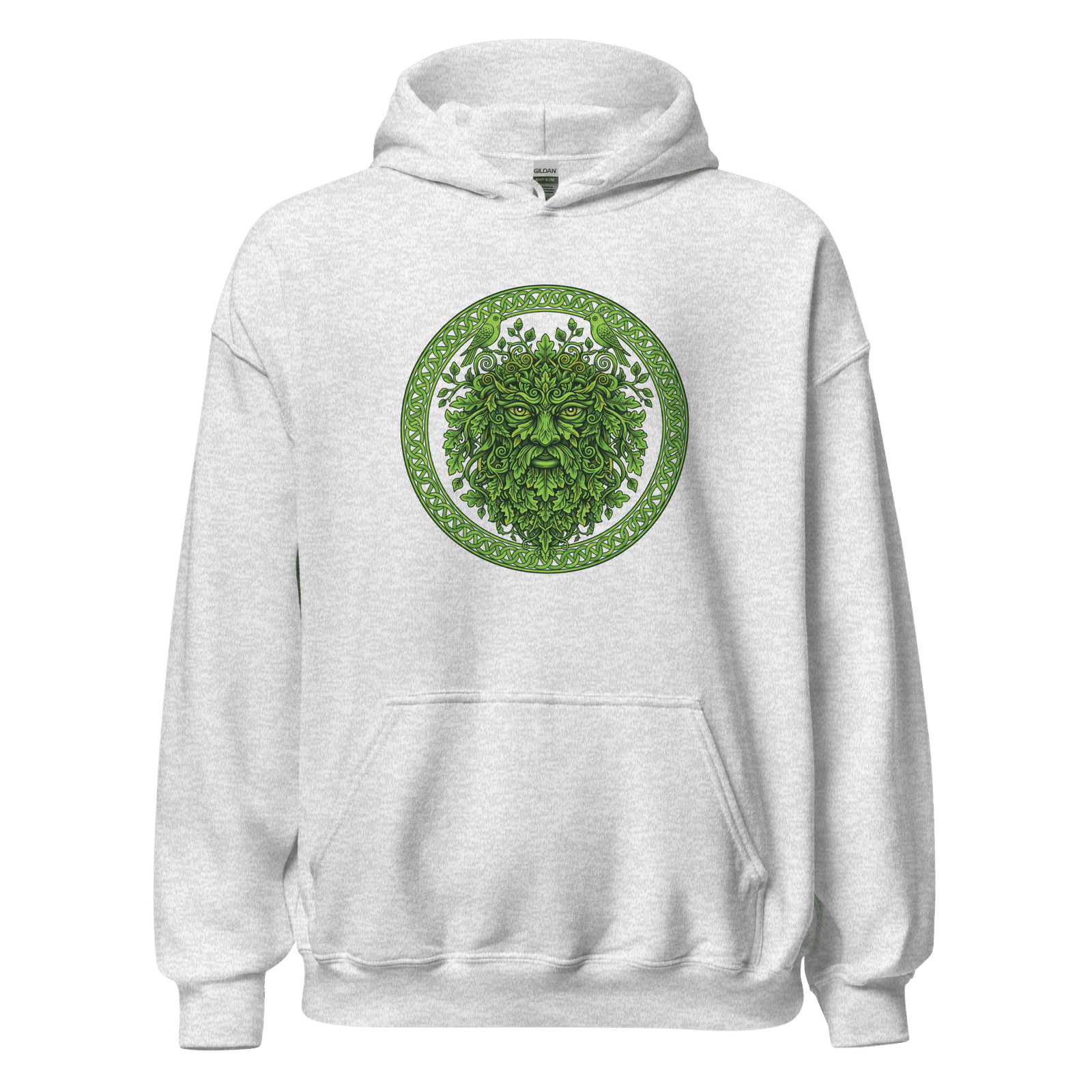 Channel ancient Celtic spirit with this striking Green Man hoodie. Featuring the iconic face of the Green Man — symbol of rebirth, nature, and the turning of the seasons — surrounded by intricate knotwork, this design carries deep roots in Celtic mythology and folklore.