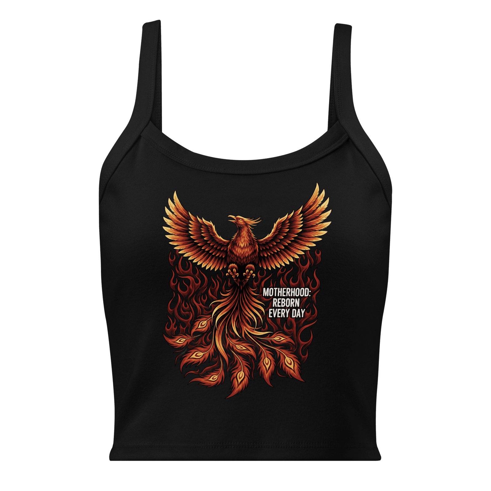 Ignite your style with the Motherhood Reborn Phoenix Tank Top. This stunning top features a vibrant phoenix graphic and the inspiring mantra, “Motherhood: Reborn Every Day,” celebrating the strength and resilience of mothers. It’s designed with a flattering mid-length cut, thick straps, and a scoop neck. Perfect for standing out on its own or layering under a jacket for a chic, powerful look.